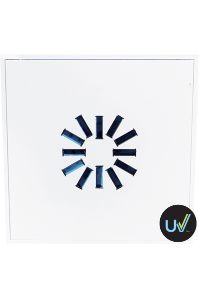 Les diffuseurs UV d’EffectiV HVAC™ sont une solution innovatrice, protégeant tel un bouclier toute pièce des contaminants provenant du reste de la bâtisse via les systèmes de ventilation. C’est une solution 3-en-1 qui stérilise l’air grâce aux rayons UVC, filtre l’air de la poussière et autres particules plus larges grâce à un filtre MERV-9A, puis améliore l’efficacité de diffusion d’air et la ventilation dans la pièce. En purifiant l’air à la toute fin des conduits et en le ralentissant encore davantage, les diffuseurs UV peuvent atteindre une désinfection de l’air allant jusq’à 100% pour les coronavirus SARS-CoV-1 et SARS-CoV-2, la légionellose et autres virus et bactéries pouvant être transmis via les systèmes de ventilation.