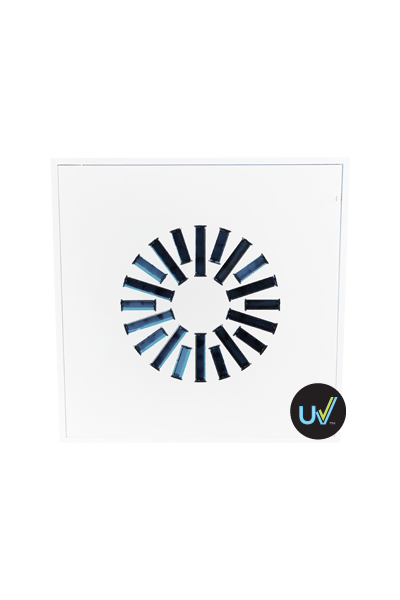 Les diffuseurs UV d’EffectiV HVAC™ sont une solution innovatrice, protégeant tel un bouclier toute pièce des contaminants provenant du reste de la bâtisse via les systèmes de ventilation. C’est une solution 3-en-1 qui stérilise l’air grâce aux rayons UVC, filtre l’air de la poussière et autres particules plus larges grâce à un filtre MERV-9A, puis améliore l’efficacité de diffusion d’air et la ventilation dans la pièce. En purifiant l’air à la toute fin des conduits et en le ralentissant encore davantage, les diffuseurs UV peuvent atteindre une désinfection de l’air allant jusq’à 100% pour les coronavirus SARS-CoV-1 et SARS-CoV-2, la légionellose et autres virus et bactéries pouvant être transmis via les systèmes de ventilation.