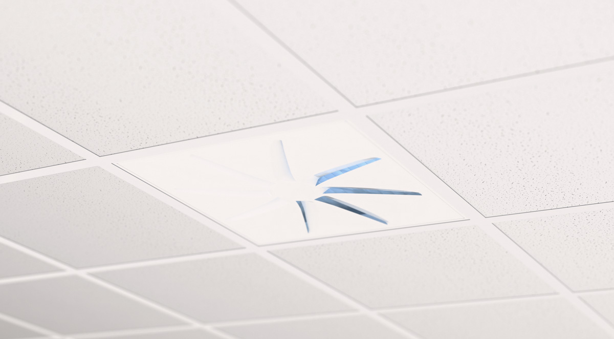 OTO-UV Architectural Swirl Diffuser distributes the air in a fix 360-degree high induction swirl pattern.