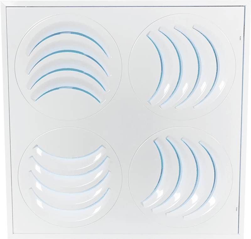 Thanks to the PLAY-UV diffuser, HVAC technicians can shape the air circulation in the room with precision, ensuring an almost perfect ventilation in any room configuration.