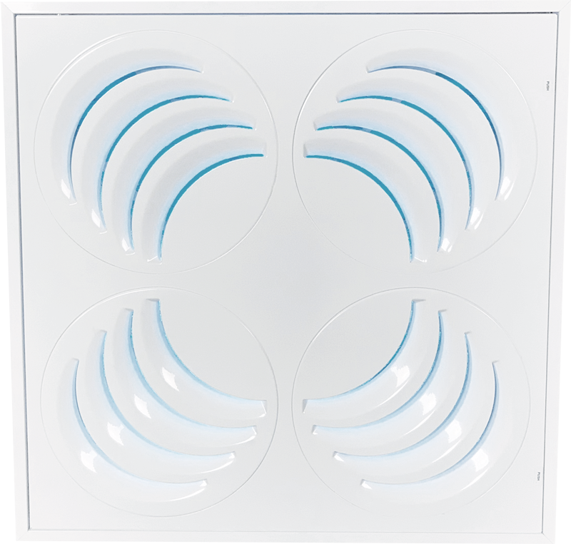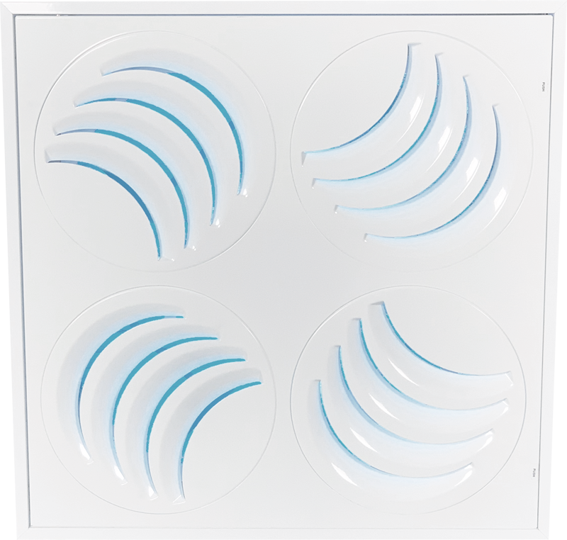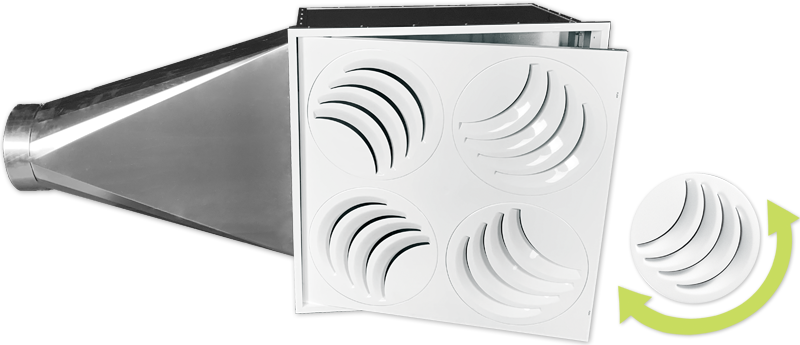 PLAY is the only diffuser in the world providing a full 360-degree horizontal adjustment of the airflow. Each round sector can be manually rotated from the face to redirect the airflow exactly where we need it.